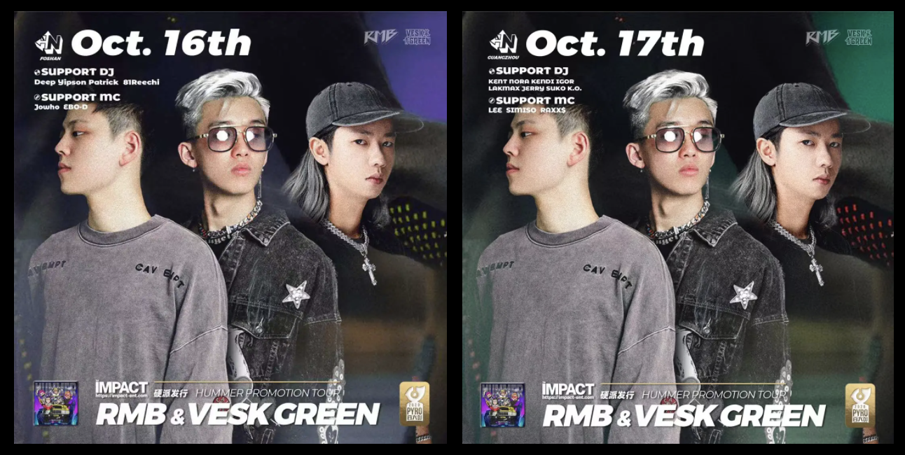 就在10月16日和17日,刚获得2021年 PYRO 百大 DJ 第14名的 VESK GREEN 青菜和 PYRO 百大 DJ 第30名的RMB组合,带着他们合作的新单曲《Hummer》直接开炸广佛两城 IN.SIDE CLUB,接下来让我们共同回顾这连续两晚现场盛况。